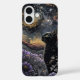 Funda iPhone 16 Cosmic Gaze: Black Cat Under the Stars