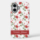 Funda iPhone 16 Custom Name Red Roses & Paw Print Floral