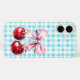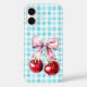 Funda iPhone 16 Cute Cherry Coquette Bow Blue Gingham
