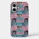 Cute Cats Pink Blue Knitting Girly iPhone 16 Fundas presenta gatos lindos asomando a través de un patrón rosa y cincelado Perfecto como regalo para los amantes del gato para Navidades, cumpleaños, vacaciones y más. Diseñado por ©2024 Evco Studio www.zazzle.com/store/evcostudio