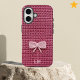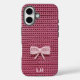 Funda iPhone 16 Cute Pink Crochet Bow Yarn Custom Name