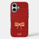 Funda iPhone 16 Cute Red Crochet Bow Yarn Custom Name