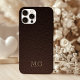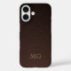 Funda iPhone 16 Dark Brown Faux Leather and Gold Monogram Initials