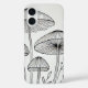Un elegante dibujo en blanco y negro de hongos, mostrando detalles complicados pero mínimos dibujados a mano. Las líneas delgadas y ventiladas capturan la delicada belleza de los hongos manteniendo al mismo tiempo una simplicidad sobria y elegante.