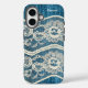 Funda iPhone 16 Denim azul moderno y encaje blanco