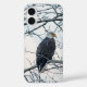 Fotografía de una águila calva sentada en una rama de árbol, mirando a un lado, con un trozo de pescado colgando de su pico. El pájaro parece tener una frente ceñida, lo que indica que tiene asco para quien la haya perturbado. El árbol en el que está colgado el águila no tiene hojas como lo fue la escena fotografiada en invierno. Derechos reservados ©2021 Kimberly J Tilley.