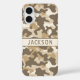 Customize this multi-hued brown desert camouflage iPhone 16 case with your name in a trendy modern CAP font in brown on cream. It's masculine and perfect for your favorite military, hunting, country or outdoorsman!