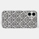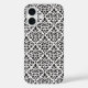 Funda iPhone 16 Desplazar Damask negro sobre patrón blanco
