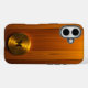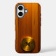 Funda iPhone 16 Disco de oro cepillado en madera ámbar