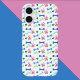 Are you looking for a cute phone case? This phone case features a pattern of pink dog paw prints, blue dog bones, green hearts and the word woof.