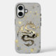 Dragón con estrellas de oro y plata por todas partes. El color de fondo es el personalizable. iPhone 16.