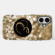Funda iPhone 16 Dreamy Bokeh Gold Purpurina Letra E Monograma Negr