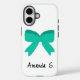 Funda iPhone 16 El estuche de Bow Phone con tu nombre, turquesa