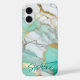 Funda iPhone 16 Elegant Gold Sage Green Marble Custom Name