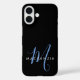 Funda iPhone 16 Elegant Modern Black Blue Script Monogram