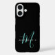 Funda iPhone 16 Elegant Modern Black Teal Script Monogram