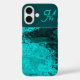 Funda iPhone 16 Elegante Aqua Verde azulado audaz Monograma de gui