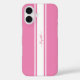 Funda iPhone 16 Elegante Carreras blanca rosada Bandas Monogramada