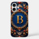 Funda iPhone 16 Elegante letra dorada B rodeada de corazones