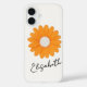 Funda iPhone 16 Elegante Naranja Daisy / Flor y nombre en marfil