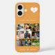 Añade nueve imágenes familiares, niños, mascotas o mejores amigos y crea tu propio hermoso estuche de teléfono de collage con tu nombre de monograma inicial dentro de un corazón blanco sobre un fondo naranja. ++++++++++ Fácil de personalizar con las imágenes cuadradas y la letra de su personalizado