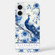Funda iPhone 16 Elegante neerlandés Delft Blue Floral Peacock acua