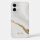 Un elegante funda de mármol y purpurina de oro para iPhone 16 a personalizar con tu nombre.