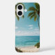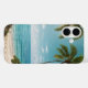 Una tranquila cala tropical de agua turquesa y arena blanca bajo un cielo luminoso. Ideal para refrescantes estuches de teléfono de verano.