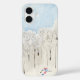 Una pintura acuarela de un esquiador de fondo cuesta abajo, divertida, adorna este estuche de teléfono.