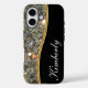 Elegante diseño de funda para smartphones creado en una joya brillante simulada en forma de gráfico impreso digitalmente en la portada, emblema de monograma negro y dorado que puedes personalizar con tu nombre con las iniciales de gota o monograma para crear el tuyo propio. Lleva tu smartphone con estilo bling tan único como tú.