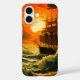 Este estuche de teléfono tiene un barco.