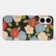 Funda Floral iPhone 16 con rosa azul, caliente y suave, verde y dorado para un toque de bling en un fondo oscuro. El arte original está pintado a mano, no un diseño de IA.