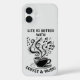Comience el día con la perfecta armonía del café y la música. Este estuche de teléfono incluye una taza de café con vapor musical giratorio, que capta la esencia de una mañana tranquilizante o un descanso energizante. El texto dice "La vida es mejor con el café y la música", lo que lo hace imprescindible para los amantes del café y de la música por igual.