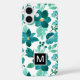 Funda iPhone 16 Estuche para iPhone de patrón de flor azul monogra