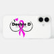 Estuche para iPhone - Amo el diseño de cinta de dos dimensiones rosadas con "I heart" encima del logotipo de doble D.