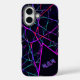 Destacar con este estuche para iPhone geométrico y de alta densidad, personalizable. Con un fondo negro elegante con grietas eléctricas, rosadas, azules y violetas, esta funda de teléfono duradera y elegante añade un toque audaz y futurista. ¡Ideal para los amantes de la tecnología y de la moda!