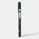 Un elegante estuche para iPhone presenta un patrón ilustrado de bosque invernal con un nombre de personalizable en la parte inferior.