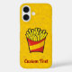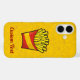 ilustracion personalizado de un pequeño paquete de papas fritas sobre fondo de comida basura sin soldadura amarillo. texto personalizado.