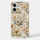 Flores de marfil y naranjas pálidas, con acentos verde azulados y tostados, en un fondo beige, crean una deliciosa estuche para iPhone boho. Un diseño muy bonito.