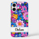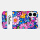 Haz una declaración retro con esta funda de teléfono iphone 16 inspirada en los hippies de los 70 con flores de poder floral groovy. Es moderna y trendy con flores pintadas de colores brillantes. Hazlo único con tu nombre en una fuente de letra moderna en negro. ¡Se verá fabuloso en tu teléfono!