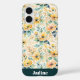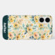 Flores doradas brillantes y suntuosas con hojas azules en un fondo crema hacen que este iPhone sea brillante, alegre y femenino!