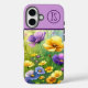 Funda iPhone 16 Flores silvestres amarillas y púrpuras monogramada