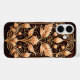 Un carpintero de marfil con flores barrocas y hojas sobre un fondo negro crea un hermoso y llamativo diseño en este estuche para iPhone.