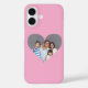 Funda iPhone 16 Foto familiar con fondo rosa cardíaco