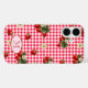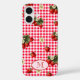 Funda iPhone 16 Fun Red Gingham Strawberries Personalizado Monogra