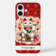 Haz una declaración con esta funda para iphone 16 que presenta un Gato de la Suerte con flores rojas alrededor en la parte superior de un fondo dorado y rojo. El Maneki-neko japonés moderno pero tradicional está diseñado para atraer buena suerte, prosperidad y clientes a tu negocio. La pata izquierda levantada trae clientes y riqueza, y el gato blanco simboliza la felicidad general. Se vuelve exclusivamente tuyo con tu nombre en letra mayúscula en negro. ¡Invita la suerte y la prosperidad a tu vida!