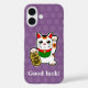 ¡Este estuche de teléfono de Maneki Neko traerá buena suerte a tu teléfono! ¡Este es un encanto popular de buena suerte en Japón! El fondo hexagonal morado es un patrón clásico japonés de "kagome", que es un diseño que imita el tejido de bambú en una canasta. Utiliza el editor de personalización para seleccionar un color de funda diferente! El texto dice "¡Buena suerte!" en la parte inferior, ¡pero se puede personalizar para decir lo que quieras!