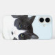 Una pintura acuarela de un bonito gatito de esmoquin blanco y negro adorna este estuche de teléfono.