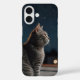 Un gato tranquilo que disfruta de la magia de una noche estrellada, ideal para soñar y relajar diseños de estuches de teléfono.