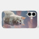 Un caprichoso gato volador en un cielo pastel con estrellas brillantes, perfecto para estuches de teléfono con temática de fantasía y sueños.